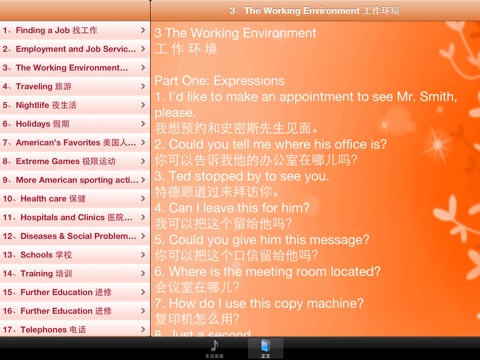 生活对话包括:找工作,工作环境,旅游,假期,极限运动等。