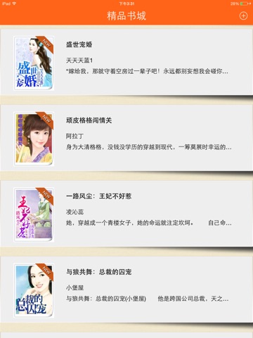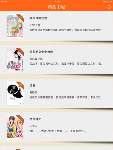 精品书城囊括了言情、穿越、玄幻等多类精编、精排书籍,书籍每周持续更新,总有一款适合爱读书的您;