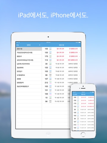 정류장을 쉽게 검색하여 등록해, 언제든지 빠르게 버스의 도착 시간을 확인할 수 있습니다. 도착 시간은 화면을 끌어내려 업데이트할 수 있습니다. 도착 예정인 버스를 터치하여 노선을 확인할 수도 있습니다.