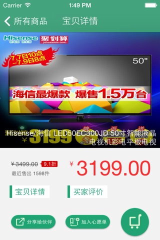 本软件为非官方App,我们精选了一批天猫优质品牌旗舰店,专门为这些店铺定制了独立App,方便广大店铺粉丝直接通过iPhone或iPad购买商品。所有的商品购买最终都是通过淘宝/天猫的页面完成,我们不会记录和获取用户的隐私信息,您可以放心购买。 即刻下载,掌握 海信 天猫旗舰店优惠折扣信息!