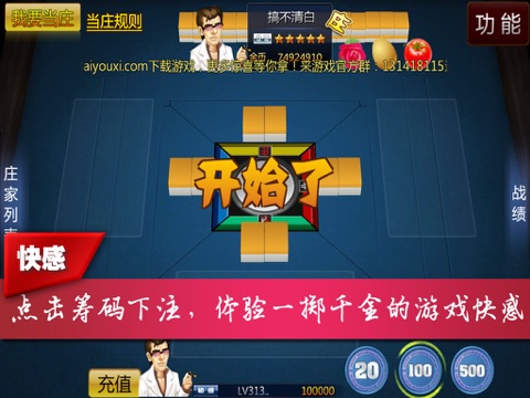 在游戏中,可以点击左侧的“申请上庄”按钮成为庄家。