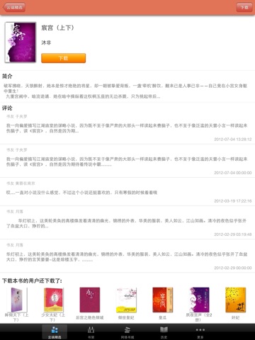 三、逼真的翻页效果,书签收藏,目录浏览,智能记忆上次阅读位置,亮度调整,白天/夜间模式等最符合书友阅读习惯的贴心设计;