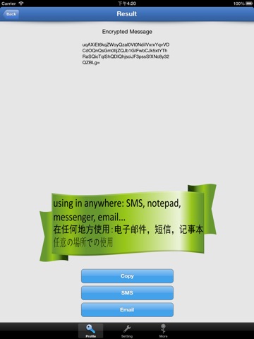 - Support direct send the encrypted message via SMS, Email...