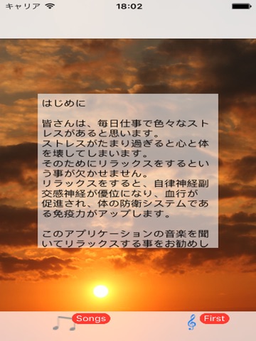 このアプリケーションの音楽を聞いてリラックスする事をお勧めします。