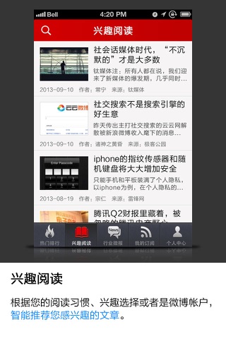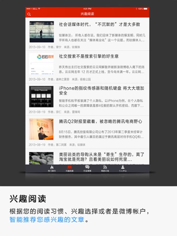 * “兴趣阅读”智能分析您的兴趣关注,只推荐您感兴趣的内容