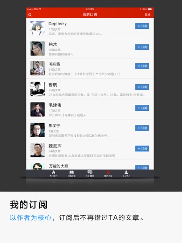 * “我的订阅”提供以作者为核心的订阅功能,不再错过TA的文章