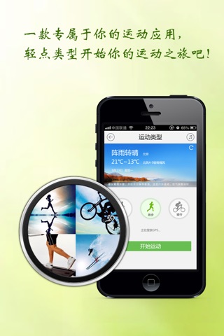 手机运动:基于GPS定位技术,运用特有算法,准确定位追踪用户运动线路;实时计算用户时速、配速以及运动时间;准确计算用户卡路里燃烧值。通过手机展现运动情况,历史运动记录,运动数据统计;在社交网络中分享你的进步。独有的活动体验,发起活动,邀请你的好友一起比赛,分享活动心得,打造全新的运动极致体验。