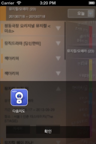 콘서트, 클래식, 뮤지컬, 오페라, 연극, 무용, 전시, 미술, 국악, 축제 등 다양한장르의 공연정보를 빠르고 쉽게 보여줍니다.