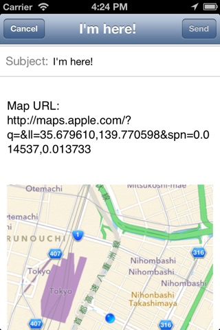 - If you need advanced features, you can send current map info to map app.