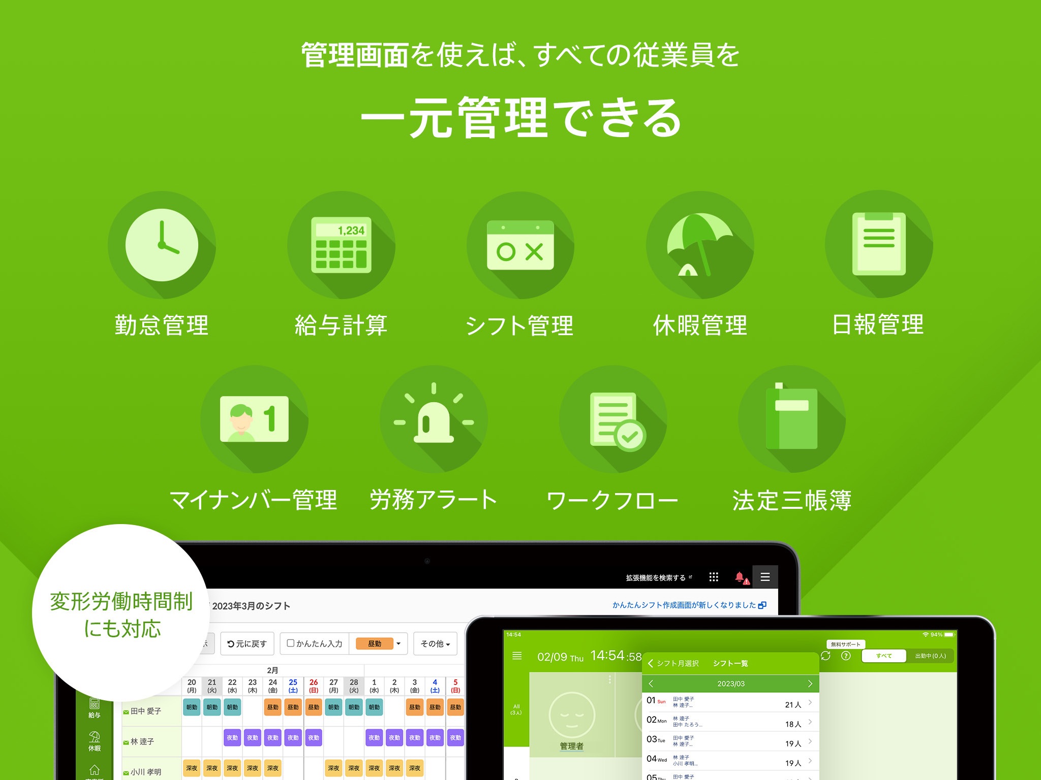 ■管理画面では、勤怠と労務を幅広くカバーします!