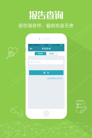 2、取报告单:在家也能取报告单,无需往返医院查询、取单;