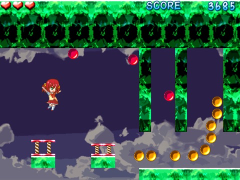 主人公リンゴさんが様々なギミックが施されたステージに挑戦していくステージクリア型の横スクロールジャンプアクションゲームだよ。