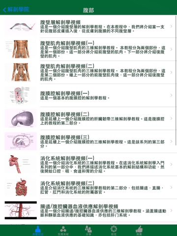 1. 以層次的方式,即選擇生理系統/身體部位,再從該系統/部位的解剖結構列表中,選擇各種視頻。