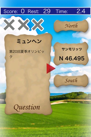世界中のさまざまな場所を北から南へ、西から東へならべていくクイズです。