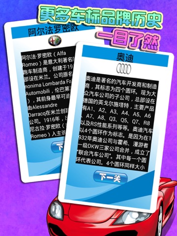 你是否能够看到一个车标就能非常迅速的说它的名字并且能说出它的历史,让小伙伴们刮目相看呢,快来玩【猜车标达人】吧,下一个车标达人就是你哦。本游戏收集近200个车标的相关信息,车标、品牌历史无一不有。