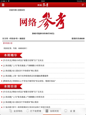 《网络参考》刊物定位于为政府、各企事业单位及各类组织的高端人群打造具有价值的内部参考。强调信息私有化定制。