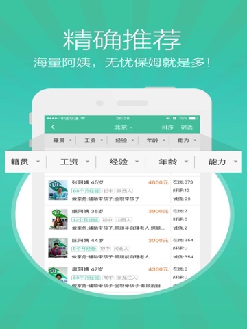 2.首创在线面试,可在线面试阿姨并进行打分筛选;