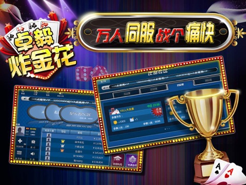 炸金花是卓毅网络精心制作的一款手机纸牌游戏,不仅传承中国民间多人纸牌游戏的精髓,同时保证游戏的操作简单,老少皆宜;现平台已汇聚众多高手,无限制挑战你的智慧与胆略,等你尽情享受游戏带来的乐趣和刺激。