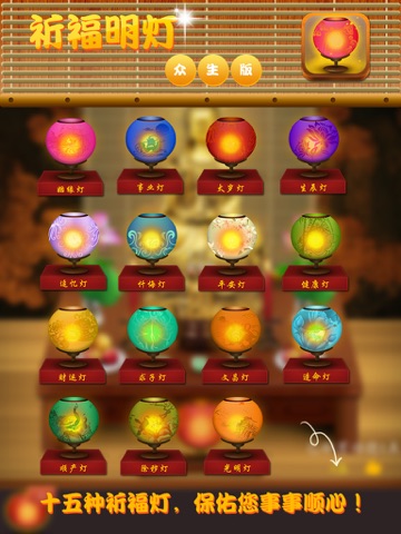 2、祈福灯阁,这里是所有用户点的祈福灯的列表页,各位缘主可以为他人的灯送去祝福,也可以邀请朋友来为自己的灯增加祝福。