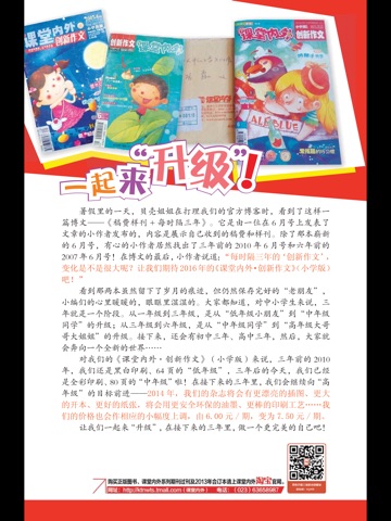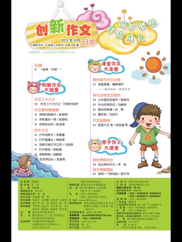 让孩子爱上作文的创新思维读本 经典栏目:作文三十六计、吹牛大王、观察力大考验、作文超市、作文素材银行、 同题作文擂台、博客总动员 地址:重庆市渝中区双钢路3号课堂内外杂志社 邮政编码:400013 电话:(023)63658987