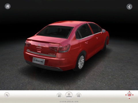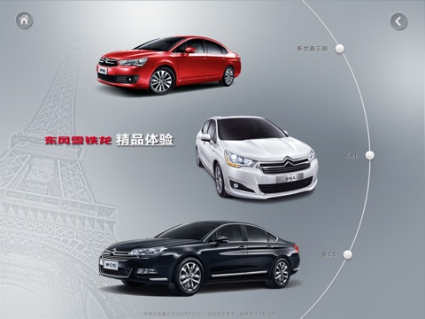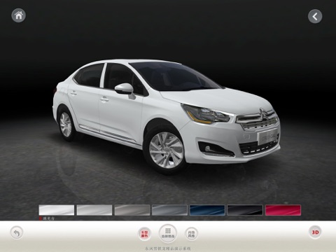 “精品体验”是一款展现东风雪铁龙精品加装效果的应用程序,下载并安装此款应用程序,您可以立即体验东风雪铁龙新世嘉三厢、C4L、新C5、爱丽舍、C3-XR、C4世嘉精品在三维场景中自主选配加装的真实感,确切地感受到精品对于整车效果的作用体现。