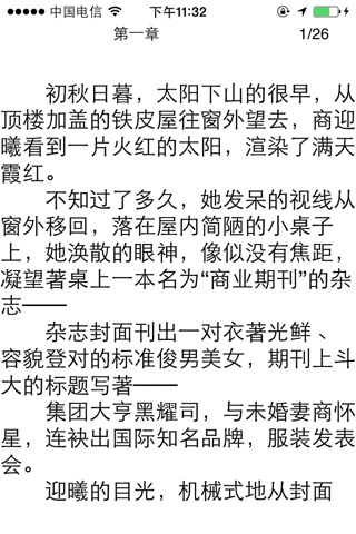 系统支持背景、字体大小、字体颜色设置,支持自动打开上一次阅读画面。