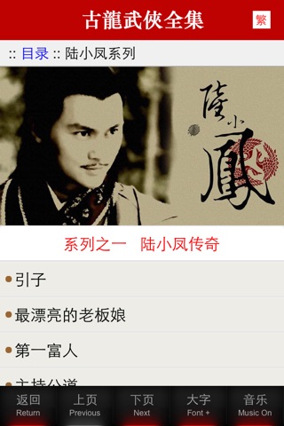 陆小凤传奇 ▪ 金鹏王朝 ▪ 绣花大盗 ▪ 决战前后 ▪ 银钩赌坊 ▪ 幽灵山庄 ▪ 凤舞九天 ▪ 剑神一笑