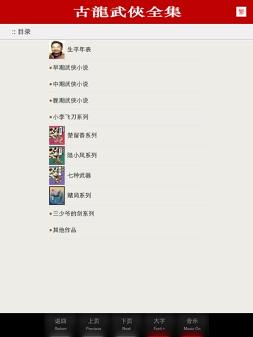 古龍文集。彙集古龍作品73部,按時間分類型歸類排列(含 古龍生平年表傳記)。 完美支援簡體繁體。