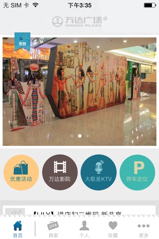 重庆万达广场集成营销活动信息推送、预订(电影院、KTV、其他)、广场内导航、实用的停车定位、活动推荐、商家管理、虚拟会员卡管理、互动分享、收藏功能、商场内导航(室内定位)等功能板块。