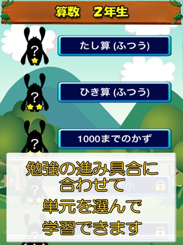 小学校2年生の算数アプリの決定版!学習の進み具合に合わせて単元を選択して、効率的に復習できます。4択のクイズ形式という使いやすさ、勉強のご褒美にモンスターを集めていく楽しさで、子供が継続的に勉強します。(iPad、iPhoneの両方に対応)