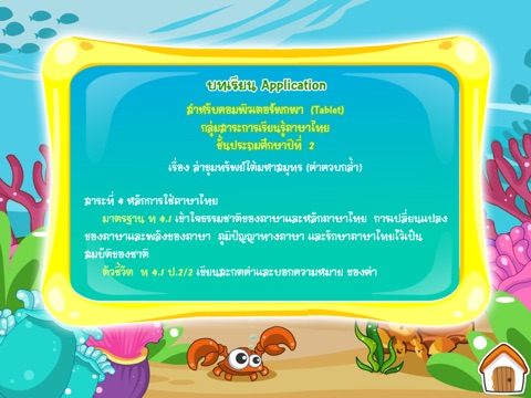 เกมการเรียนรู้ โดยสำนักการศึกษากรุงเทพมหานคร เพื่อช่วยกระตุ้นให้ผู้เรียนมีความสนใจในการเรียน เกิดการเรียนรู้ควบคู่กับความสนุกสนาน และช่วยทบทวนสาระสำคัญของบทเรียนเพื่อให้ผู้เรียนเกิดความเข้าใจและส่งผลให้จดจำเนื้อหาได้ดียิ่งขึ้น โดยเกมถูกออกแบบให้มีเนื้อหาสอดคล้องกับกลุ่มสาระการเรียนรู้ภาษาไทย ชั้นประถมศึกษาปีที่ 2