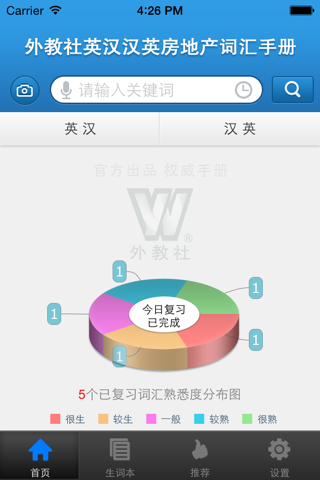 外教社官方权威正版发布,其他同名房地产词汇手册均为盗版。《外教社英汉汉英房地产词汇手册》是由上海外语教育出版社发行的词汇词典类软件,软件收录了房地产基本词汇(英汉、汉英双向收词8000余条),是房地产人士必备手册。本软件由海笛科技提供产品支持,具备手机上最便捷的查词功能(摄像头查词、语音查词等),还有清晰发音、生词收藏、生词辅助记忆等学习功能。选择高品质词典和词汇手册,学习更有保障!