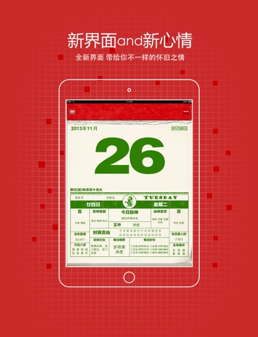 还记得年少时家里的手撕老黄历吗?集开发者心血怀旧老黄历2017版又推出了,居家,出行,家里要事不用问神选,翻翻老黄历让您成事大吉。
