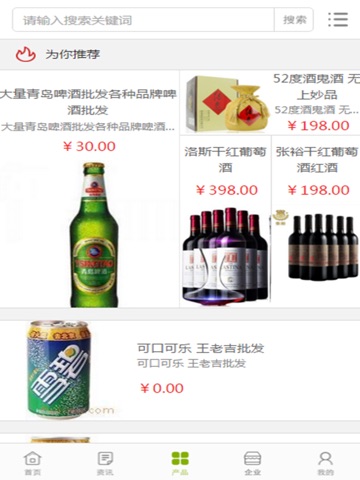 中国酒水在线行业门户是一款以酒水行业为主的大型移动电子商务平台客户端。也是一款面向广大客户提供酒水行业最新的供应、求购、商机,产品报价,行业资讯、动态、展会,企业大全等综合信息服务,集企业黄页、询盘留言、地图定位、综合搜索、建议反馈、关于我们、联系方式等多功能于一体的专业客户端。