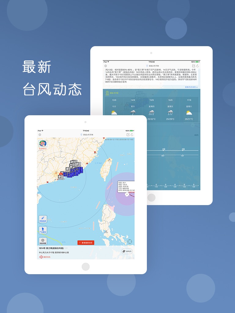 台风是深圳市气象局开发的专业台风服务软件,台风去哪了?你可以提前知道台风信息,你也可以通过我们的软件了解到最新的台风动态信息,及时做好防御,安排出行。