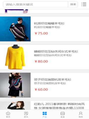 中国羊毛衫行业门户客户端旨在通过资源的整合、汇集,打造羊毛衫行业网上专业营销市场。您只要简单的几步操作即可免费注册成为中国羊毛衫移动电子商务平台客户端中的一员,提交您的企业资料就能免费拥有自己的独立手机企业商铺。您可以向上下游企业公司和商业人士展示您的企业商铺,也可以随时在中国羊毛衫行业门户提供的商务平台上免费发布供应、求购、资讯等商机信息,促进彼此之间产业的合作,实现企业之间的共同发展,轻松把握无限商机!