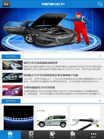 中国汽修行业门户是一款以汽修行业为主的大型移动电子商务平台客户端。也是一款面向广大客户提供汽修行业最新的供应、求购、商机,产品报价,行业资讯、动态、展会,企业大全等综合信息服务,集企业黄页、询盘留言、地图定位、综合搜索、建议反馈、关于我们、联系方式等多功能于一体的专业客户端。