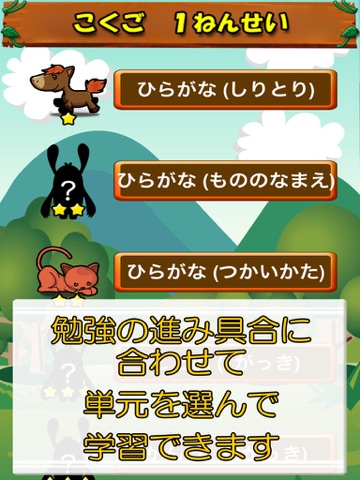 小学校1年生の国語アプリの決定版!小学校での学習の進み具合に合わせて単元を選択し、手軽に、効果的に復習することができます。サクサクと4択で問題を解いていくことができます。(iPad、iPhoneの両方に対応)