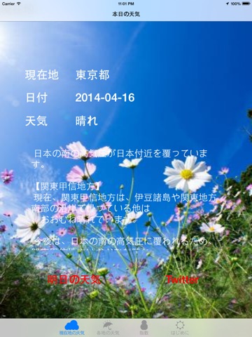 また、本日の天気より「Twitter」ボタンをクリックすると、Twitterで