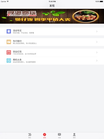 除了商机推荐功能,78商机还涵盖多类资讯板块,如活动专区:特色专题、平台活动,用户可以抢鲜看;先行赔付专区:汇聚先行赔付项目,方便用户搜索;创业红包专区:所有项目均参与创业红包发送,加盟免现金;创业指南:创业那些事儿,在这里都有解答。78商机通过硬商机+软资讯的方式,帮助创业者全方位破解创秘密。