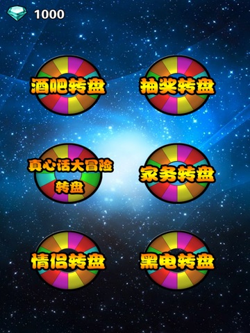 令人爱不释手的转盘游戏,根据用途集合多种转盘,是您泡吧唱K聚会居家必备的娱乐神器。转盘电子化低碳环保,无碳游戏。妈妈再也不用担心酒桌上没转盘了。转盘随身带, 意见不合转一个。