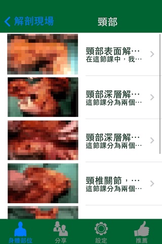 1. 以層次的方式,即選擇身體部位,再從該部位的解剖結構列表中,選擇各種視頻。