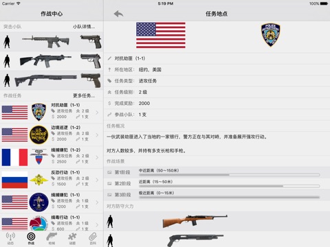 最为专业和全面的世界枪械资料库,提供武器的型号、规格、性能、文字、图片、视频等各类信息。还有独一无二的小队作战推演模式,组建精英作战小队,并为突击队员配备各种武器装备,前往世界各地完成充满挑战的作战任务。