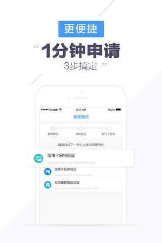 2、速度够快:手机申请3步搞定,5分钟申请,10分钟审核。
