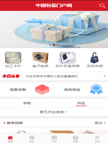 中国包装门户网是一款以包装行业为主的大型移动电子商务平台客户端。也是一款面向广大客户提供包装行业最新的供应、求购、商机,产品报价,行业资讯、动态、展会,企业大全等综合信息服务,集企业黄页、询盘留言、地图定位、综合搜索、建议反馈、关于我们、联系方式等多功能于一体的专业客户端。