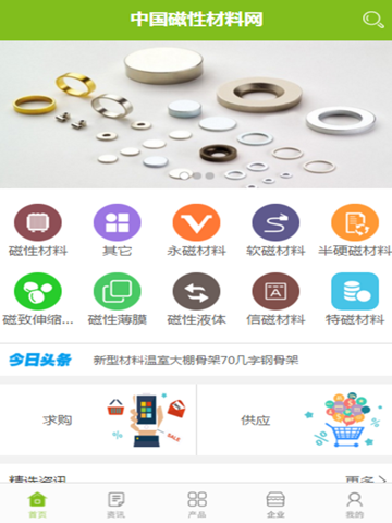 中国磁性材料网客户端旨在通过资源的整合、汇集,打造磁性材料行业网上专业营销市场。您只要简单的几步操作即可免费注册成为磁性材料j移动电子商务平台客户端中的一员,提交您的企业资料就能免费拥有自己的独立手机企业商铺。您可以向上下游企业公司和商业人士展示您的企业商铺,也可以随时在qqqqqq提供的商务平台上免费发布供应、求购、资讯等商机信息,促进彼此之间产业的合作,实现企业之间的共同发展,轻松把握无限商机!