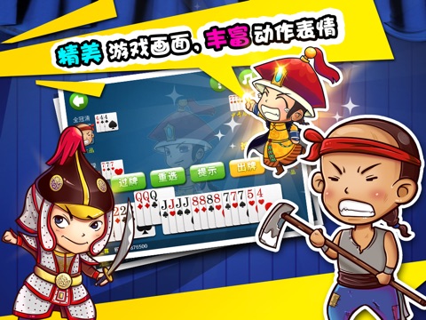 游戏画面媲美QQ、JJ、波克、博雅等牌类游戏,游戏玩法赶超QQ、联众等保皇游戏,堪称移动端保皇游戏的唯一经典力作。