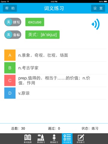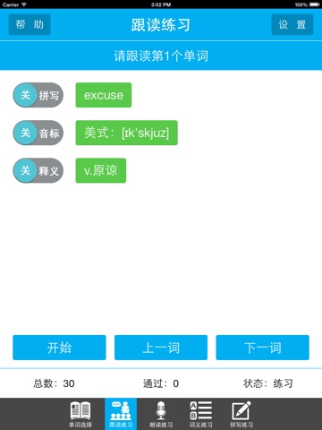 《读我背单词》的所有练习都由测试和纠错两个阶段组成,让您达到高效记忆单词的目的。