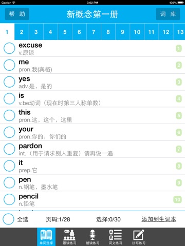 《读我背单词-新概念英语》的词库按教材,分四册,方便学习或复习。