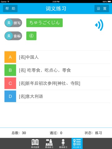 《读我背单词》的跟读和朗读练习都采用声音自动触发,让您成为一个学习日语的“君子”—动口不动手,并强迫您大声开口说日语。